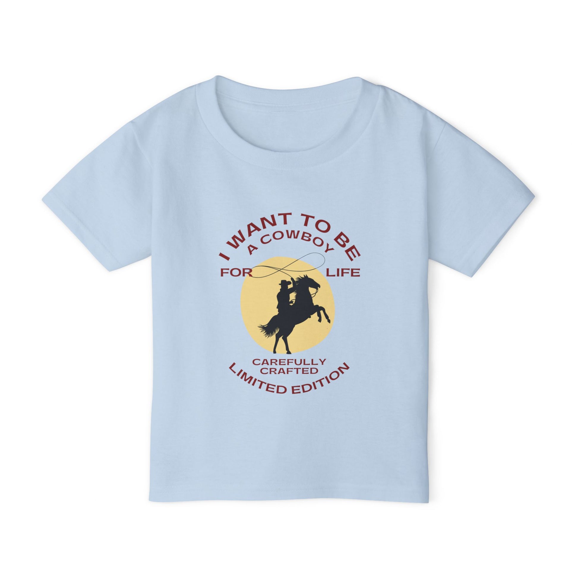 For the toddlers who tip their hats, shout "Yeehaw!" unprovoked, and have big cowboy dreams packed into tiny boots—this tee is their badge of honor. The I Want to Be a Cowboy shirt celebrates every little buckaroo with stars in their eyes and dust on their sneakers.