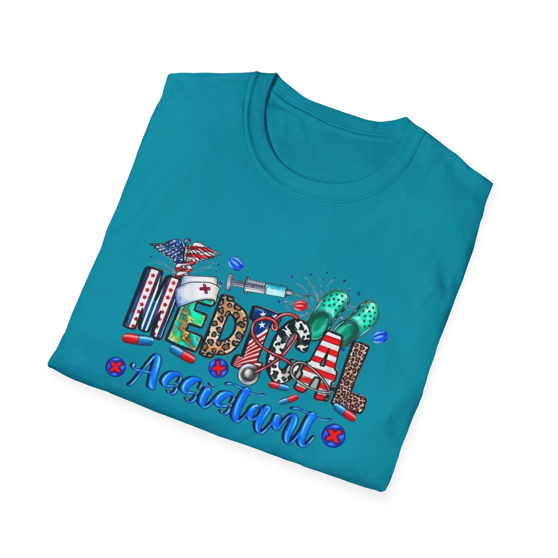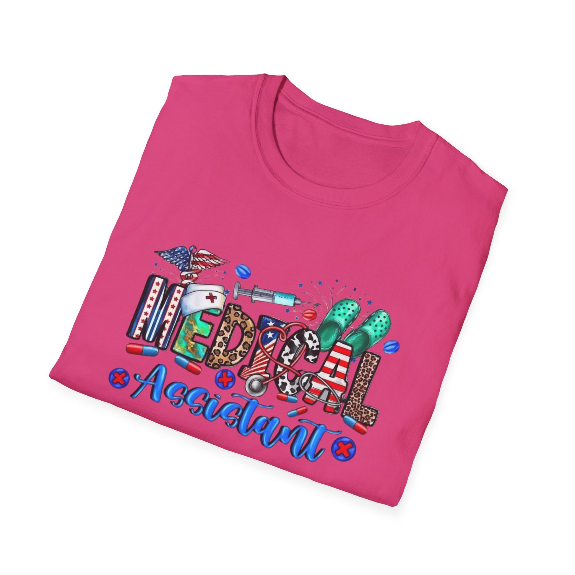 Bright, bold, and built for the multitasking MVPs of medicine. This tee celebrates the medical assistants who keep the chaos in check and the clinic running smooth. With a colorful design and softstyle comfort, it’s perfect for showing off your role with pride—on shift or off duty.
