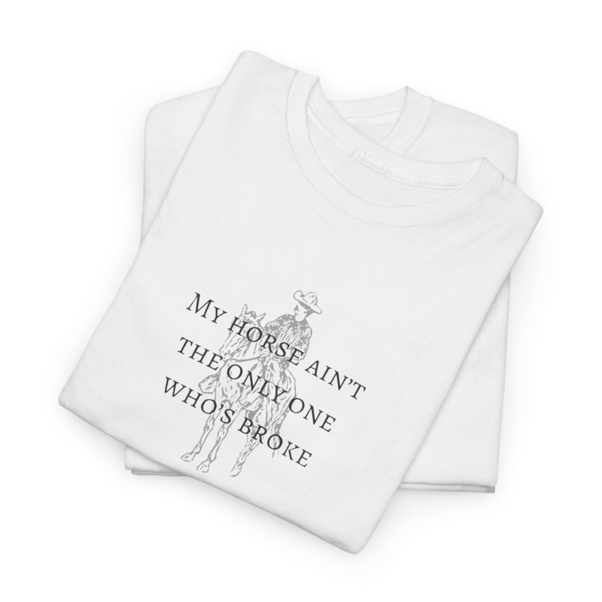 Saddle’s worn, wallet’s empty, pride’s hangin’ on by a thread—but hey, at least your sense of humor's still kickin’. This shirt is for the cowboys, cowgirls, and country souls who’ve been rode hard by life (and maybe the IRS).